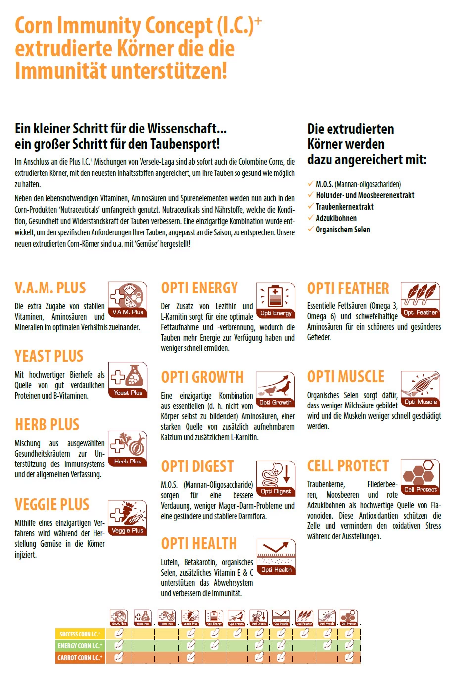 Colombine Carrot Corn I.C.+ ist ein leicht verdauliches, extrudiertes (vorgebackenes) Taubenkörnchen, das reich an Karotten ist und als Ergänzung zu der Körnermischung gegeben werden kann.